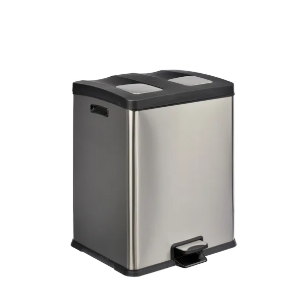 Struttura realizzata in lamiera anti-traccia; coperchio in polipropilene e acciaio inox; ospita al proprio interno due/tre secchi da 12/30 lt cad.; pedale in plastica con rivestimento in acciaio; chiusura del coperchio rallentata e silenziosa; base in ABS; maniglie laterali integrate per agevolarne lo spostamento.