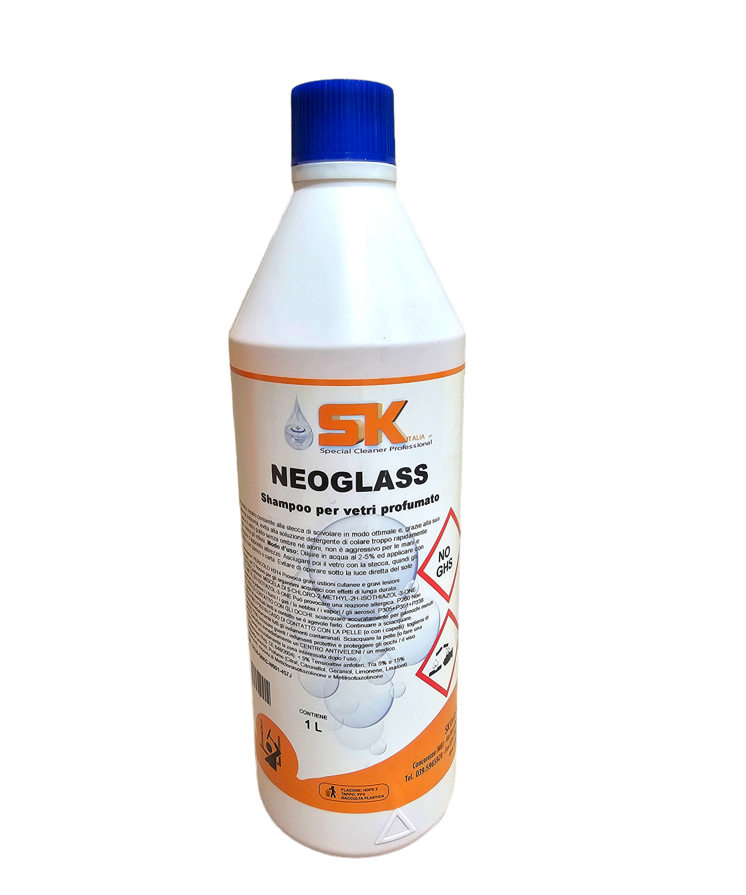 Detergente sgrassante concentrato appositamente studiato per la pulizia dei vetri con la stecca. Prodotto gradevolmente profumato, agisce in modo rapido consentendo alla stecca di scivolare in modo ottimale e, grazie alle sue caratteristiche schiumogene, evita alla soluzione detergente di colare troppo rapidamente. Lascia il vetro perfettamente pulito senza ombre né aloni, non è aggressivo per le mani e non rovina gli infissi. Adatto anche per la pulizia di pannelli solari.